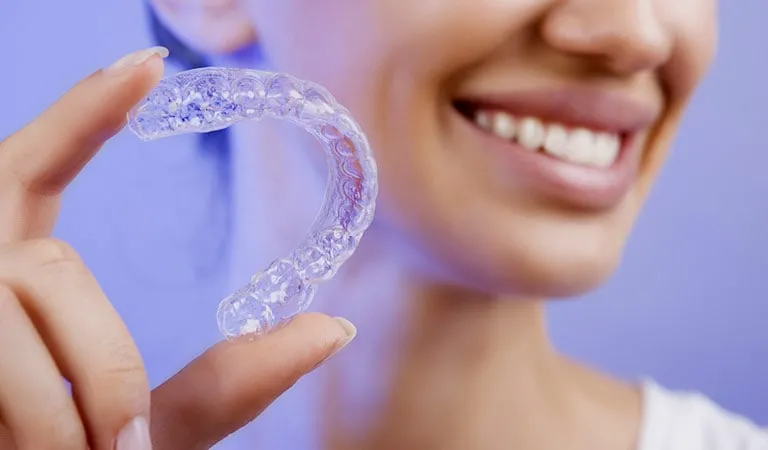 Clear aligners are a series of invisible, removable, and comfortable acrylic trays that straighten your teeth like braces. Not only are the aligners invisible, but they are also removable, so you can eat and drink what you want while in treatment, plus brushing and flossing are less of a hassle. The aligners are comfortable and have no metal to cause mouth abrasions during treatment.
